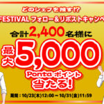 / 万福フェスフォロー&リポストキャンペーン 1日目! \ 合計2,400名様に 最大5,000Pontaポイントがその場で当...