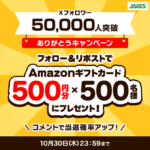\ジャックスXフォロワー5万人突破!/ ˗ˏˋありがとうキャンペーン!ˎˊ˗ Xアカウントのフォロワー5万人突破を記念して フ...