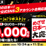 えらべるPay最大10,000円分がフォロー&リポストで合計1,000名にその場で当たる。