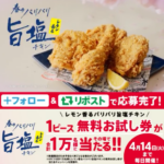 本日から レモン香るパリパリ旨塩チキン発売🍋 発売を記念して 抽選で合計【1万名様】に1ピース無料お試し券プレゼン...