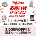※随時更新中 楽天市場では4月4日(土)20時より「お買い物マラソン」が開催中です。クーポンやキャペーン情報はこの記事でまとめ...