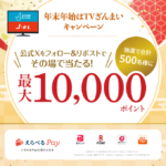📺J:COMチャンネル・Jテレ 年末年始はTVざんまい キャンペーン🎉 合計500名様にその場で当...