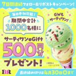 /#GWもサーティワン 🎉 \ 毎日参加🆗1日目❣️ 期間中合計1,0...