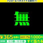 QUOカードPay1,000円分がフォロー&リポストで合計365名にその場で当たる。