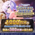 / 5.5周年直前生放送記念CP! \ 生放送は11/7(金) 20:00開始! ▼Youtubeギフトコード がその場で当...