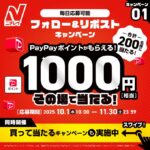 \キャンペーン実施中🎯/ 1000円相当のPayPayポイントが当たる! 11/30 まで毎日参加可能...