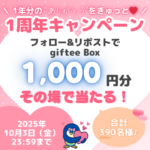 🎊アカウント開設1周年記念🎊 / 390名様に【1,000円分】のギフトが その場で当たる!...