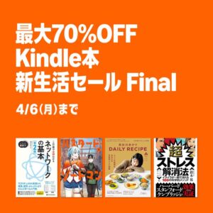 Amazon.co.jpのKindleストアでは「Kindle本 新生活セール Final」が開催中です。対象の電子書籍が最大70%OFFになります。