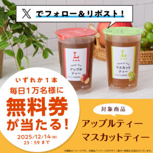 ローソン研究所では『12月10日(水)スタート♪毎日1万名様に抽選で「ローソンオリジナルチルド飲料」無料券をプレゼント!』キャンペーンが開催中です。