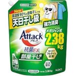 Amazonにて「【大容量】アタック抗菌EX 部屋干し用 洗濯洗剤 液体 じめじめ密集干しでも強力消臭 つめかえ用 2380...