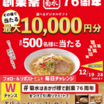\🎊菊水は12月24日で創業76周年💐/ フォロー&リポストキャンペーン1日目 最大10,000円分...