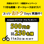Amazonギフトカード500円分がフォロー&引用リポストで250名に当たる。
