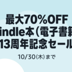 Amazon Kindleストアにて「Kindle本(電子書籍) 13周年記念セール」が開催中です。30,000冊以上の電子...