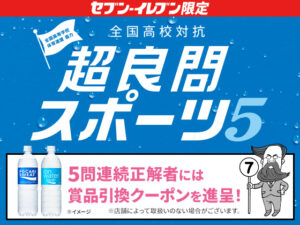 セブンイレブン特設サイトで「全国高校対抗 超良問スポーツ5」キャンペーンが開催中です。クイズに挑戦して5問連続正解すると、対象のドリンクに使える引換クーポンがもれなくもらえます。