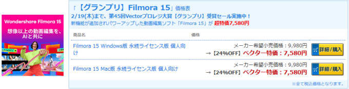 ⇒ベクターPCショップ「Filmora 15 Win版/Mac版 永続ライセンス版 個人向け」