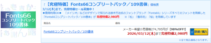 Fonts66コンプリートパック/109書体 商用利用OKが限定特価2,980円!【98%OFF】